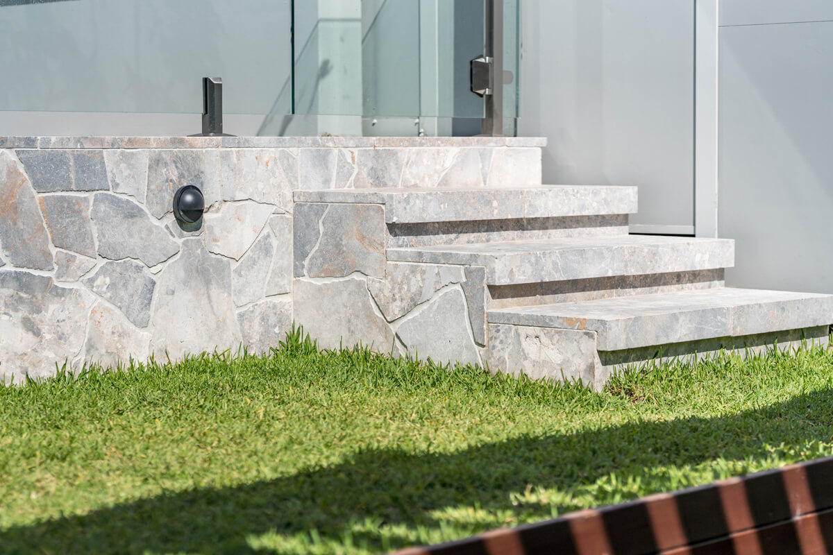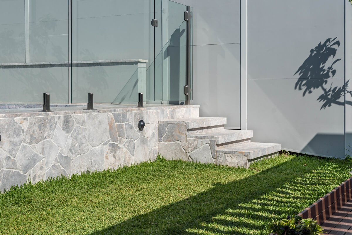 Like most Crazy Natural Pavers, Norse Marble varies in shape and size and though predominantly sporting a cool colour palette, Norse Marble has a warm balance of greys with soft salmon colours. Thus, you can use the stone for modern and more traditional home designs where each piece tells a unique story.