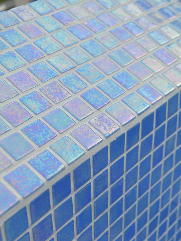 Ezarri Iris Ocean Spanish Glass Pool Tiles feature a beautiful bright baby-blue colouring with speckles of pink throughout that reflect a clear, sparkly ocean on the water. Made from 100% recycled glass, using a JointPoint technology, these glass pool tiles are environmentally friendly and designed to stand the test of time. Additionally, the backing of Ocean Spanish Glass Pool Tiles allows for maximum glue adhesion, preventing sagging on vertical surfaces. Their 4mm thickness also makes installation easier.