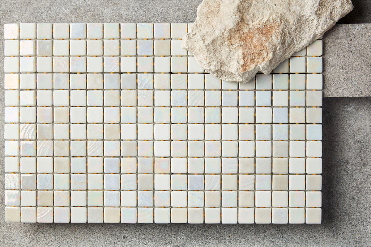 All ONIX 98 % recycled glass mosaics series are made of molten glass. Molten glass characteristics may include irregular edges and small variations in size. These characteristics are inherent to the product and to the standard production. The small size and shape variations can affect the grout joint appearance and enhance the natural aspect of these products. Use constitutes acceptance
