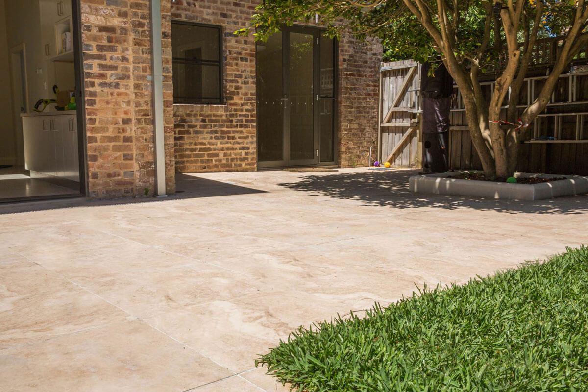 Tuscany Travertine Porcelain Pavers, resembling honed or filled travertine, are a beautiful choice for any outdoor paving areas. With caramel tones and light streaks, these porcelain pavers are easy on eyes and soft on the feet! These Structural Porcelain Pavers have a heavy break load (they’re extremely durable) and don’t require sealing. If you ever wanted Travertine Pavers but were always worried about having permanent stains, then this product is the ideal alternative for you. Tuscany Porcelain Structural Travertine Pavers are great for all landscape projects and are great at hiding dirt. If glare is a concern, rest assured, our Tuscany Travertine Porcelain Pavers are easy to look at, even on the brightest of days.