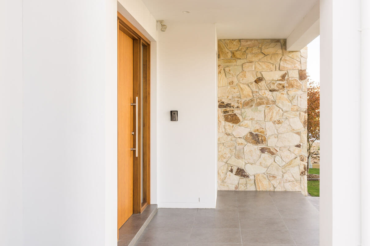 Nostra Organic Sandstone Loose Stone Wall Cladding has distinctive blond sandstone colours and burnt brown tones which makes it a beautiful addition on feature walls, fireplaces and columns. Though it’s a sandstone, it has double the density of Sydney Sandstone. Nostra Sandstone is a free-form style of wall cladding and is available as one-piece corner sections and matching rock-faced capping. It also has split sides which look great when installed as dry stack (with no grouting).